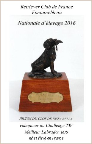 Il a remporté le challenge TW du BOS destiné uniquement à un Labrador né et élevé en France.